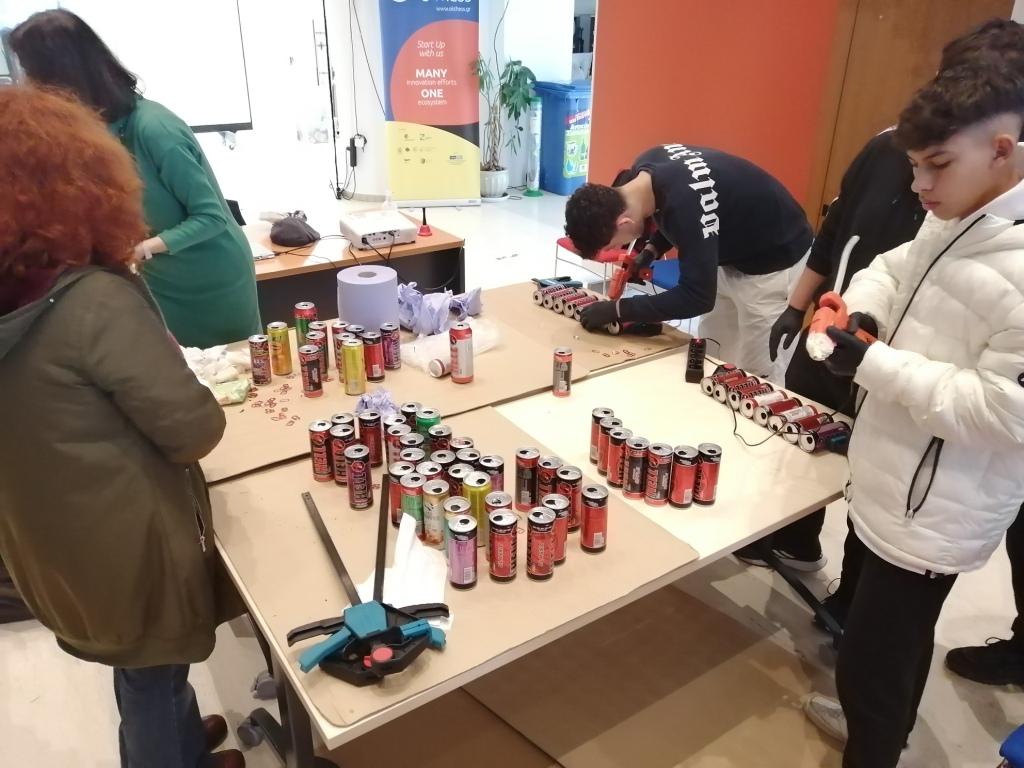 - 2η ομάδα: κατασκευές με κουτιά αλουμινίου (πρόκληση η κατασκευή σκαμπό ή πολυθρόνας! )